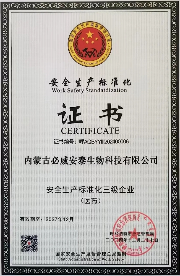 內蒙古必威安泰生物科技有限公司成立于2008年6月,位于呼和浩特市和林格爾乳業(yè)開發(fā)區,占地123畝,注冊資本1.25億元。公司專注于生物疫苗研發(fā)生產,是原農業(yè)部批準的首家采用細胞懸浮培養(yǎng)技術生產口蹄疫疫苗的企業(yè),擁有兩條7550升德國進口懸浮培養(yǎng)生產線,年產能20億毫升,覆蓋多種動物疫苗。公司被認定為自治區“企業(yè)研發(fā)中心"“重點龍頭企業(yè)單位”“企業(yè)技術中心"和國家"高新技術企業(yè)”,“口蹄疫基因標記疫苗”獲全國商業(yè)科技進步一等獎。2024年,瑞普生物控股后,公司構建全生命周期質量管控體系,獲多項國際權威認證,包括ISO9001、ISO14001、ISO45001、ISO5001及獸藥GMP、CNAS、GCP、GSP等。